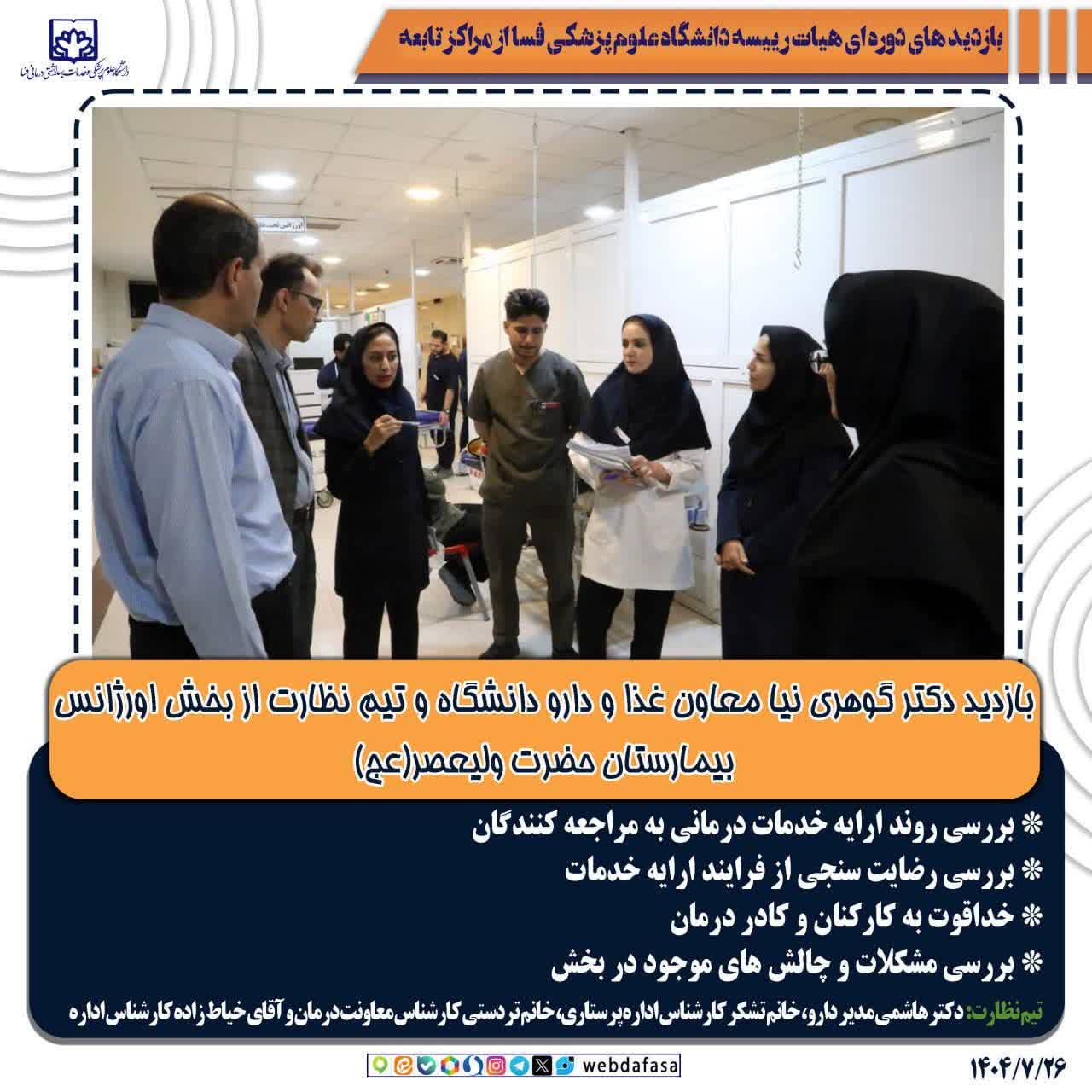 بازدید دکتر گوهری نیا معاون غذا و دارو دانشگاه و تیم نظارت از بخش اورژانس (اتفاقات بستری و اورژانس اطفال) بیمارستان حضرت ولیعصر (عج)